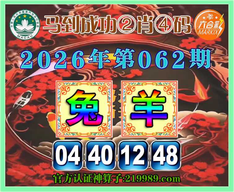 062期:【马到成功】 🏃‍♀️②肖④码🏃‍♀️【兔羊】【04.40.12.48】开:00准